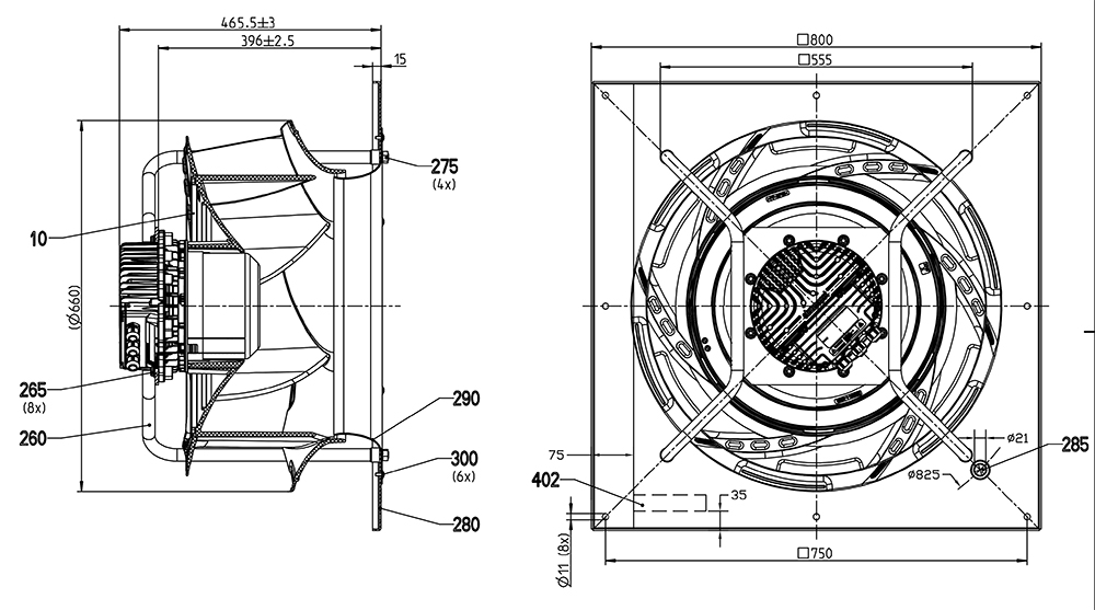 ebmpapst, Centrifugal Fan, 630mm, 400V, 1300W, 16845m³/h, 700Pa, 2800rpm, 70dB