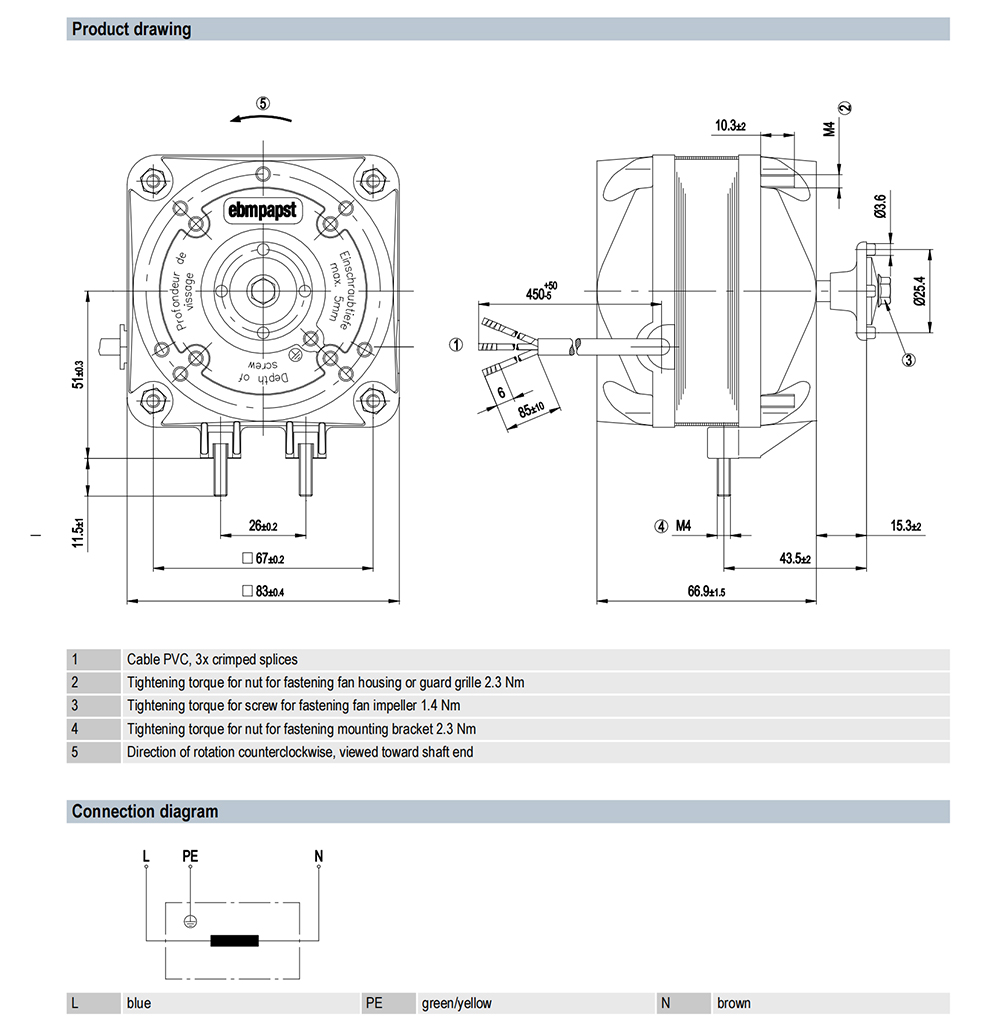 ebmpapst, motor, 45mm, 230V, 30W, 1750m3/h, 1550rpm