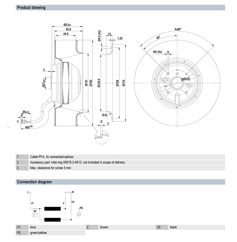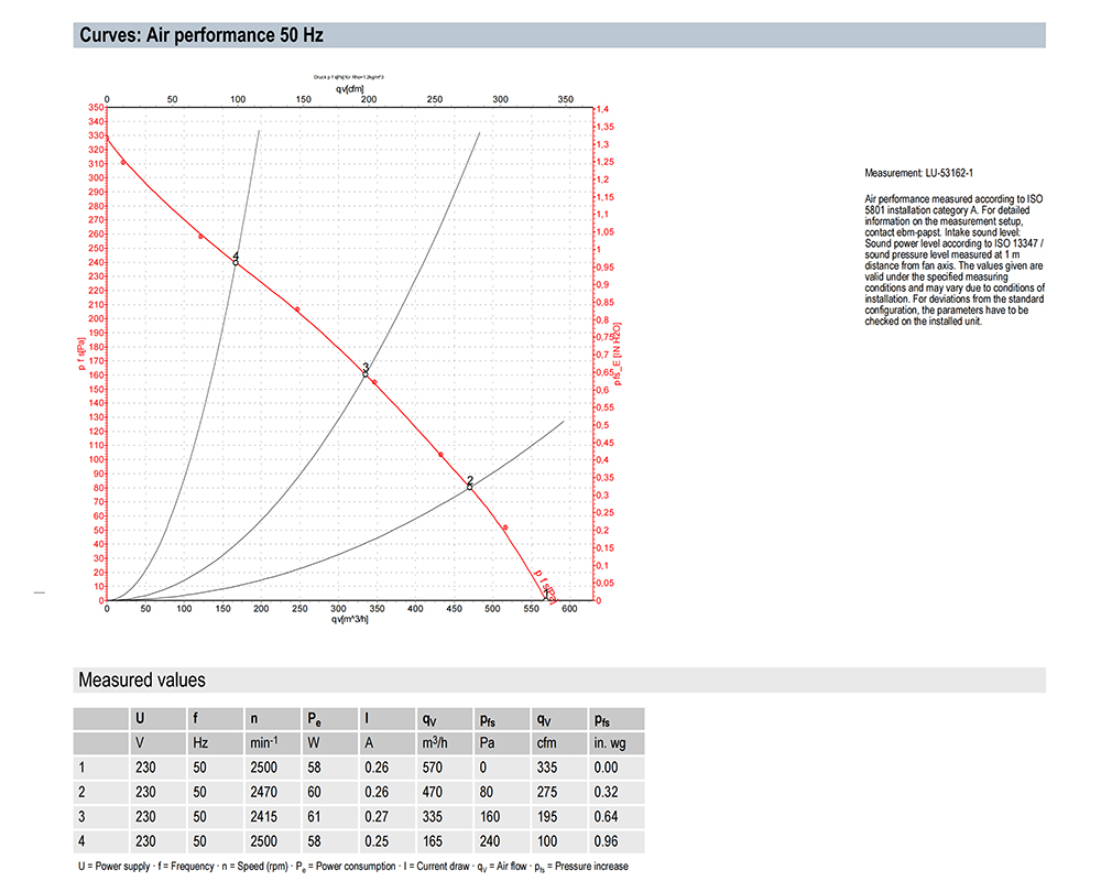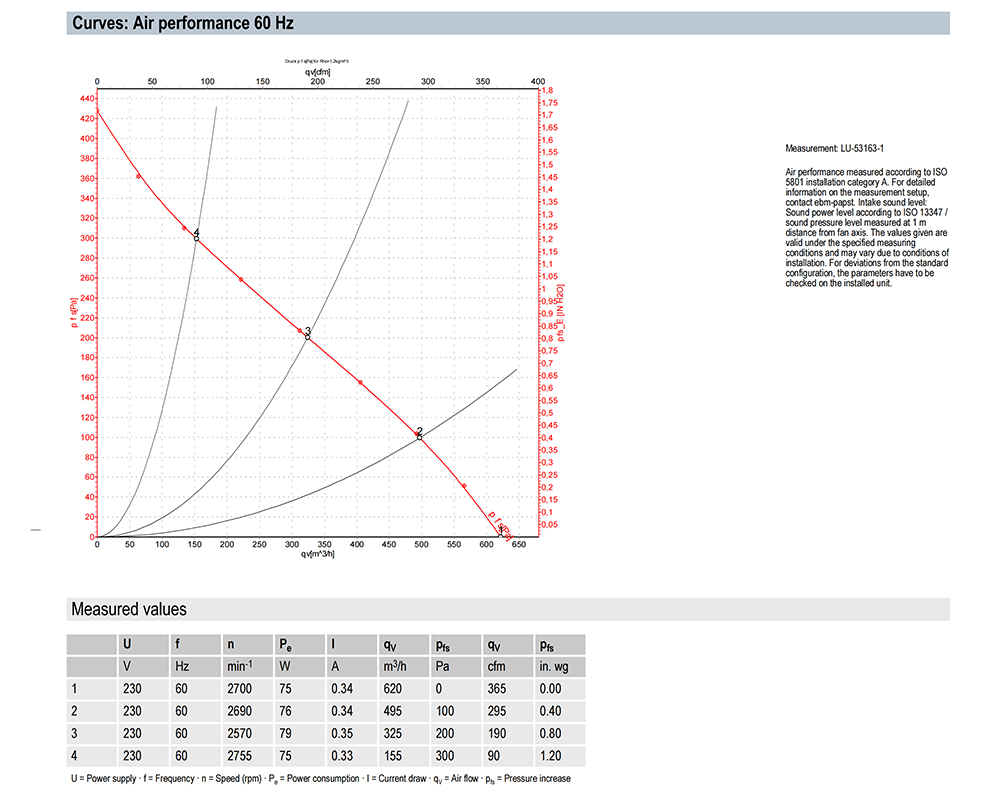 ebmpapst, Centrifugal Fan, 190mm, 230V, 75W, 620m3/h, 300Pa, 2700rpm