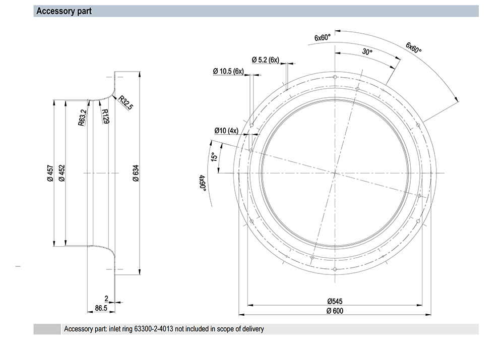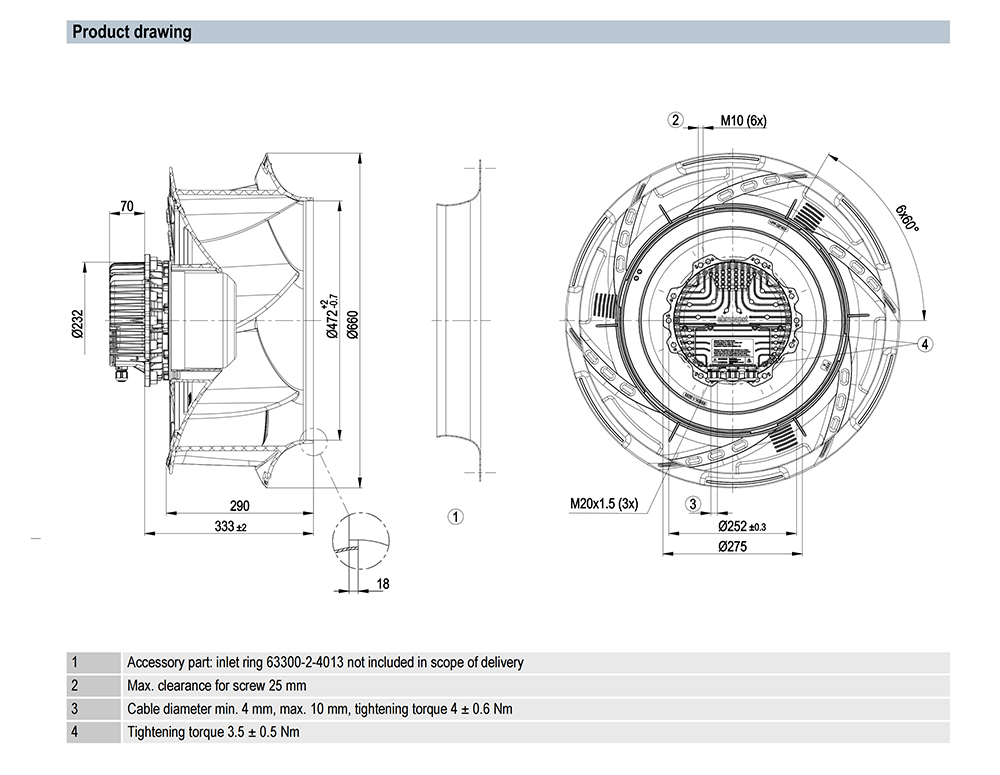 ebmpapst, Centrifugal Fan, 630mm, 400V, 2700W, 16740m³/h, 700Pa, 1300rpm, 70dB