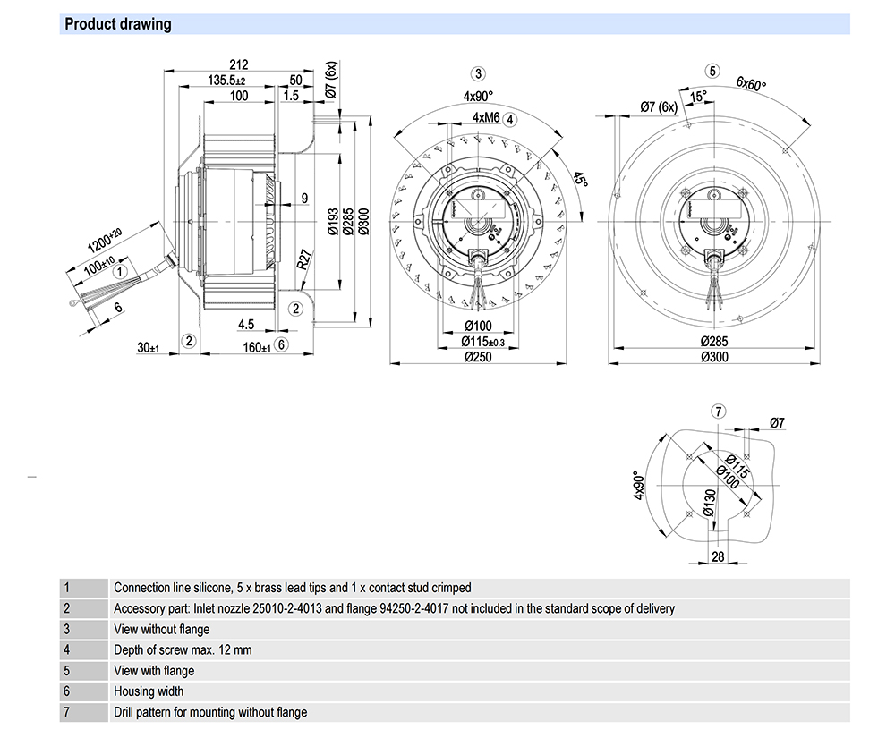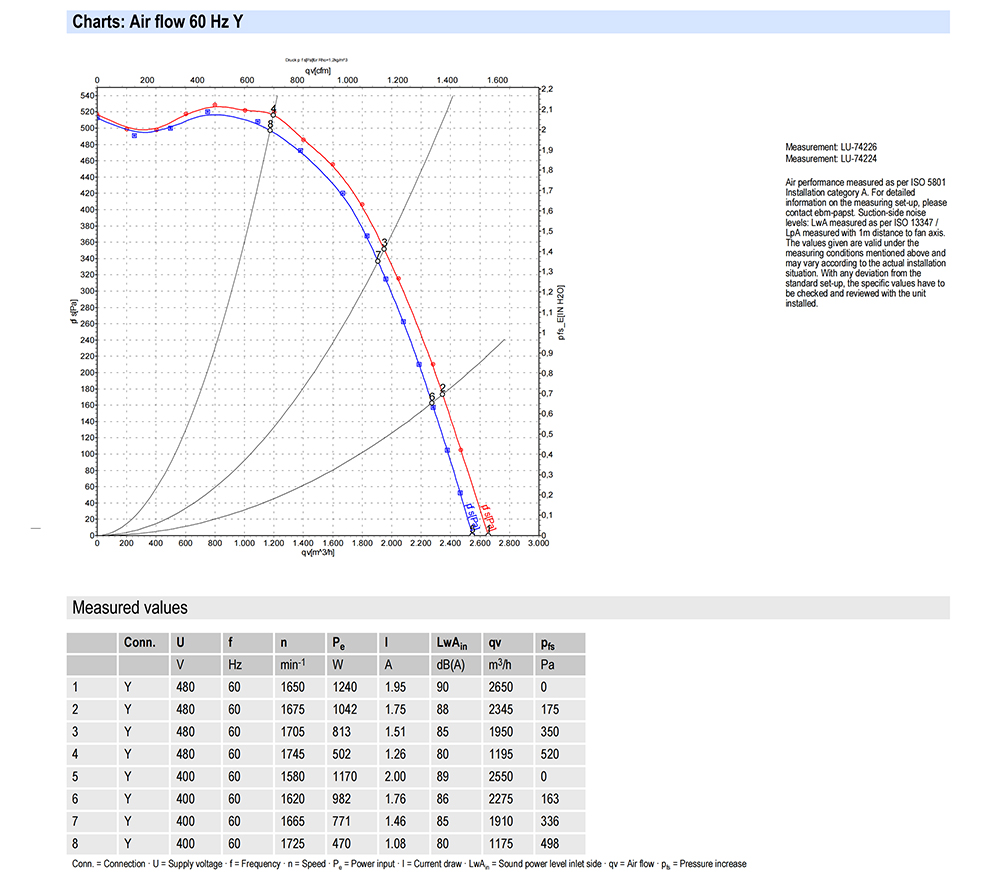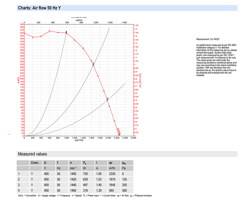 ebmpapst, Centrifugal Fan, 250mm, 400V, 1170W, 2550m³/h, 498Pa, 1580rpm, 89dB