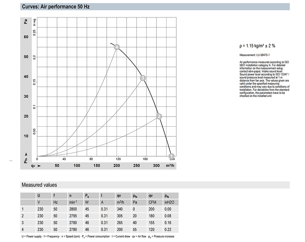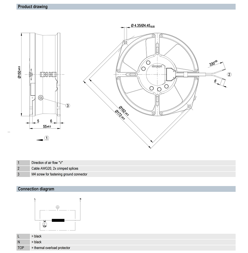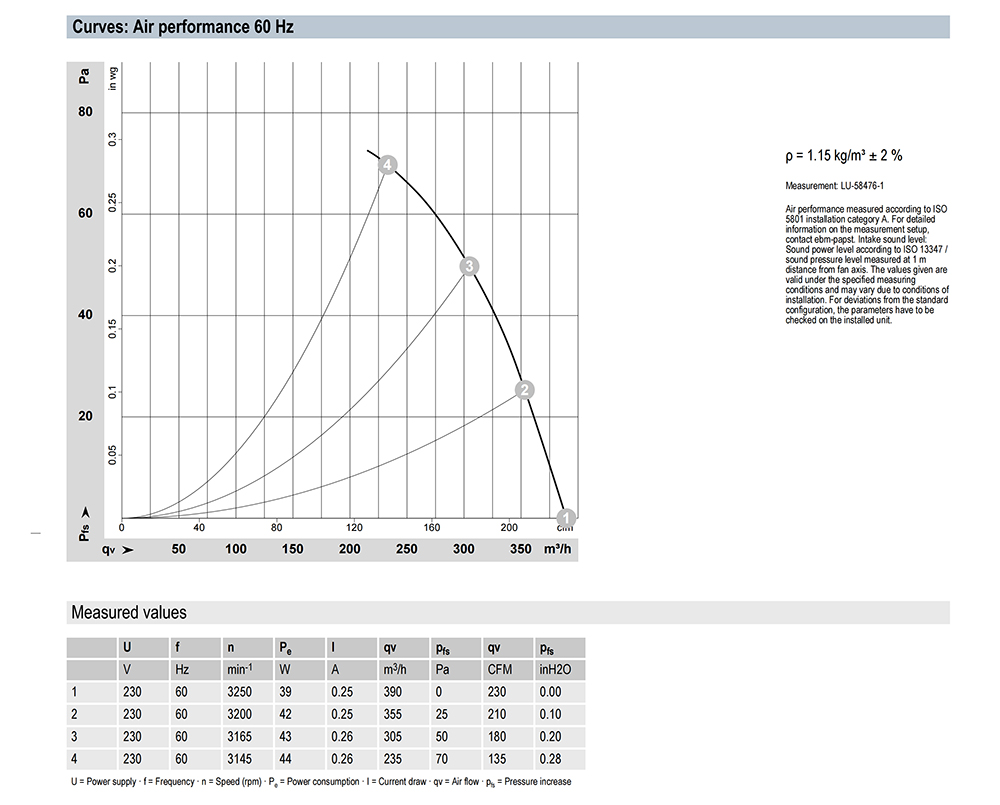 ebmpapst, Axial Fan, 172*150*55mm, 230V, 39W, 390m3/h, 70Pa, 3250rpm