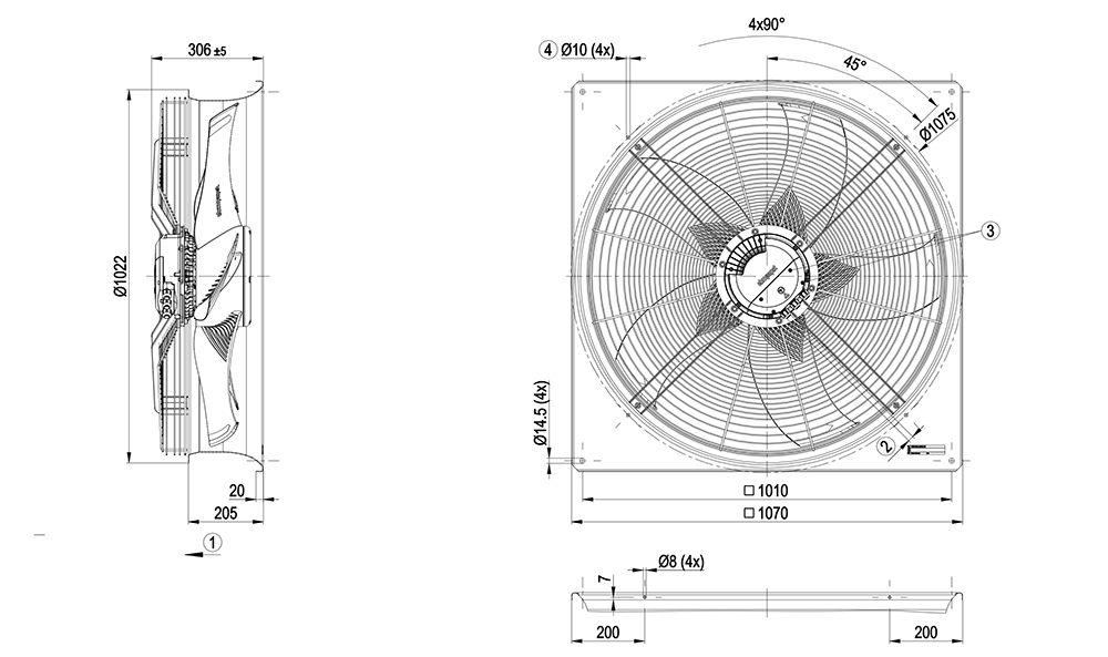 ebmpapst, Axial Fan, 910mm, 400V, 1770W, 29030m³/h, 170Pa, 850rpm, 80dB