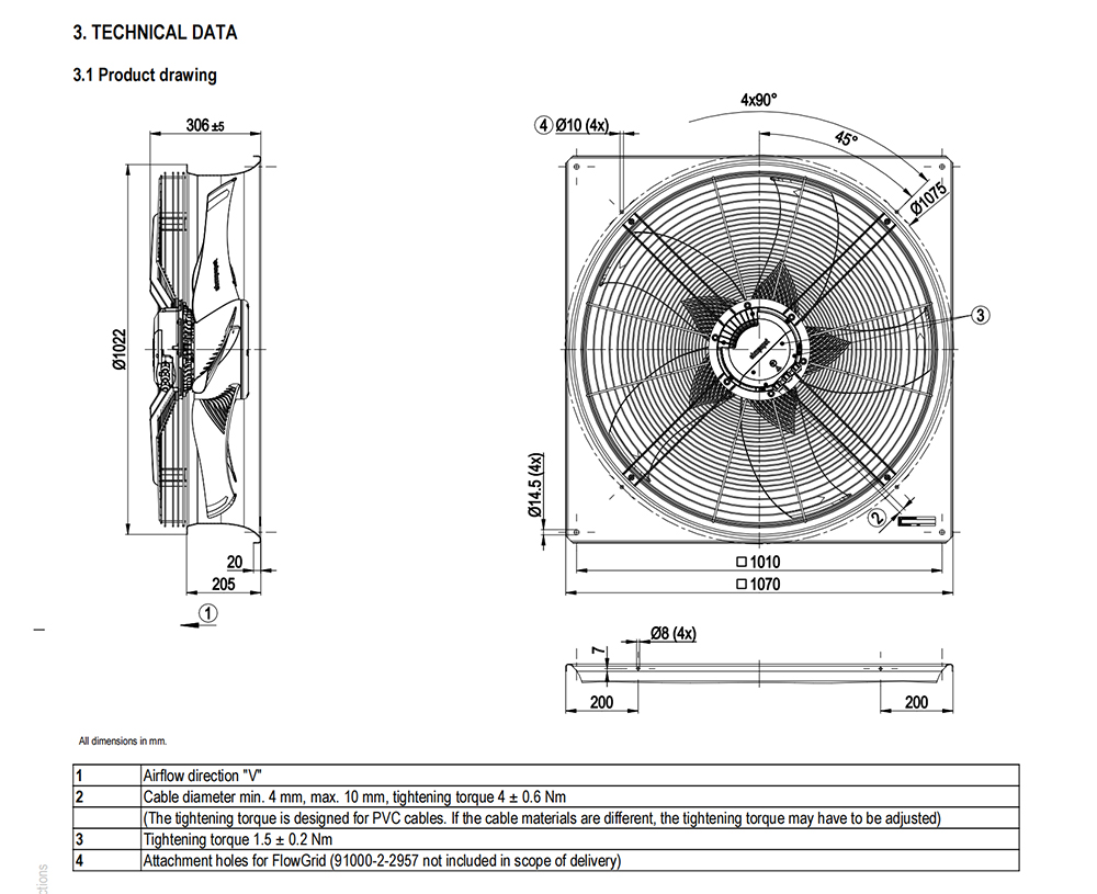 ebmpapst, Axial Fan, 910mm, 400V, 1770W, 29030m³/h, 170Pa, 850rpm, 80dB